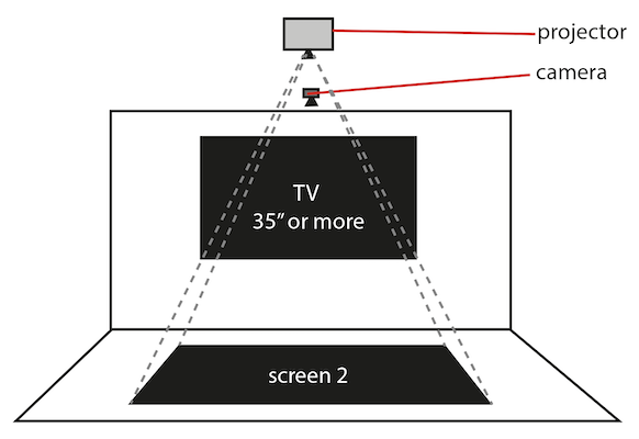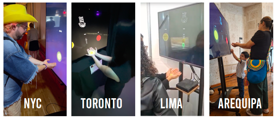 The installation plays with the possibility of synchronizing two screens, a large regular screen and a projector that points towards the floor, thus generating the sensation that when the participant gets close enough to the screen, the element they are approaching jumps into their hand. The first version of "Get What You Need" received a great reception in Brooklyn at the Brooklyn space of ITP - Tisch at NYU. On this occasion, an improved version is proposed, with a more polished interface and complete poetic texts.